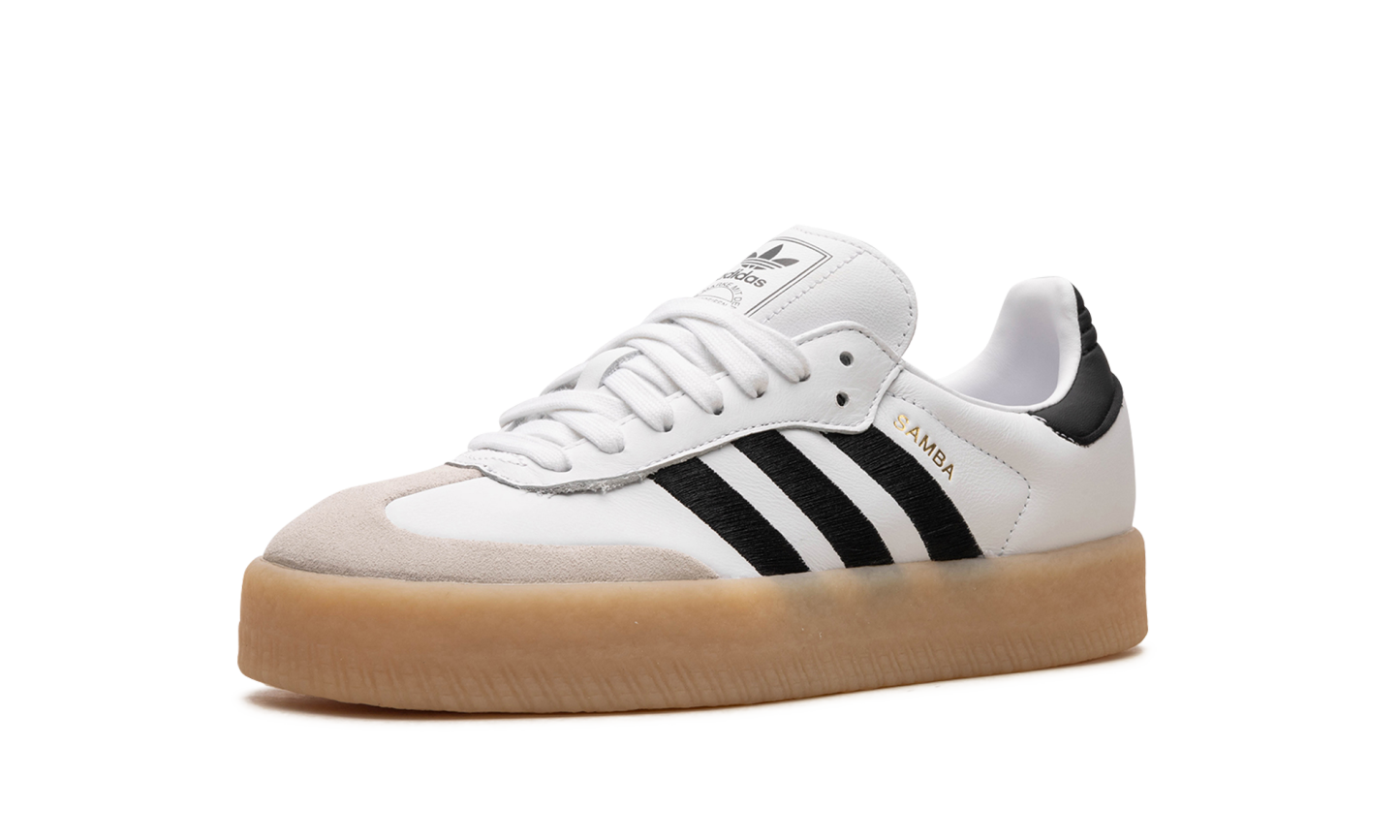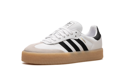Adidas Sambae White Black Gum are o bază din piele albă premium, contrastată de clasicele trei dungi adidas din piele neagră, oferind un aspect rafinat, dar îndrăzneț. Pe lateral găsim o inscripție aurie „Sambae”, în timp ce totul se bazează pe o talpă groasă.
